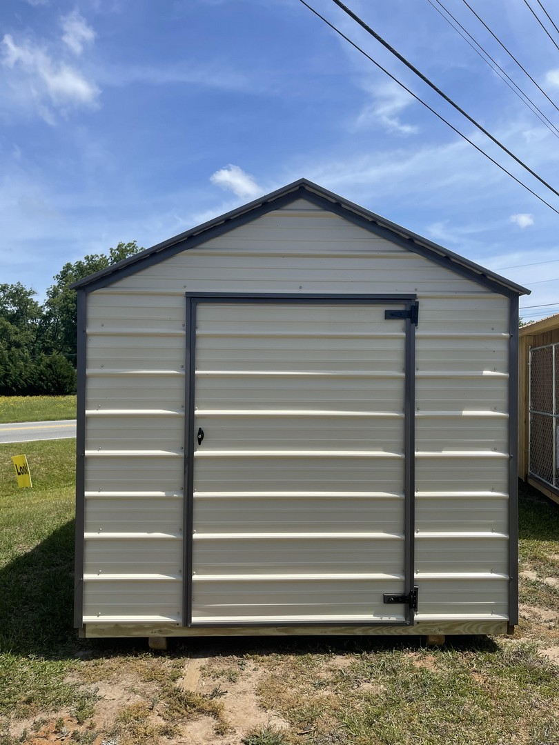The metal utility building comes with a 10 year warranty. Available in sizes from 8 ×12 through 12x32 These portable utility buildings make great workshops,storage buildings, tool sheds and more! We can add windows, lofts, ramps or other features to make this building meet your needs! Built locally in Montezuma, GA. Our goal is to offer you a quality product at a reasonable price. Metal Utility buildings come with a side, roof and trim color of your choice.