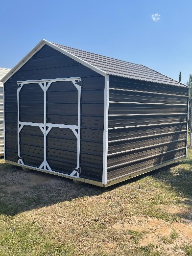 Screened windows Ramps -multiple sizes Shelves Workbenches Lofts Shingles and Vents Ridge vent on shingled roof Spray insulation Vinyl siding Metal siding Hardie Board Built On-Site Tie down Building | Extra Barn Doors Side Doors 3’ 9-light door 3’ metal door 6’ rollup door 8’ rollup door 9’ rollup door 8’ walls 6 – 8/12 pitch roof Dormers Railing on Porch Electrical Wiring |