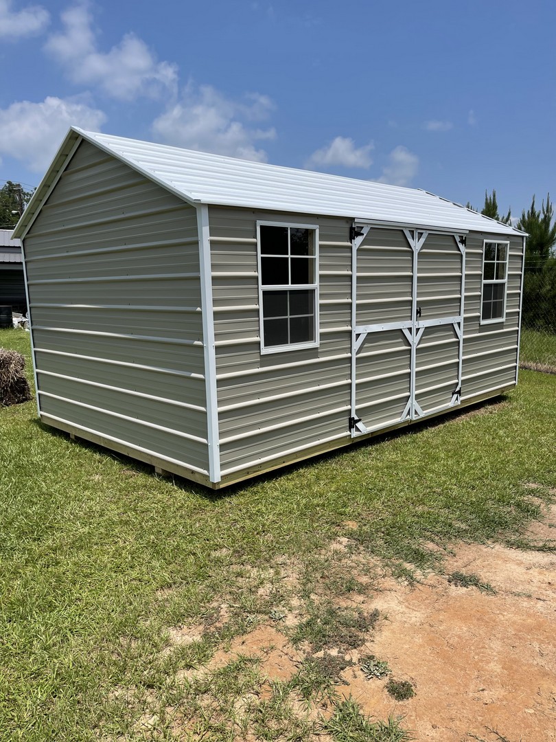 The metal utility building comes with a 10 year warranty. Available in sizes from 8 ×12 through 12x32 These portable utility buildings make great workshops,storage buildings, tool sheds and more! We can add windows, lofts, ramps or other features to make this building meet your needs! Built locally in Montezuma, GA. Our goal is to offer you a quality product at a reasonable price. Metal Utility buildings come with a side, roof and trim color of your choice.