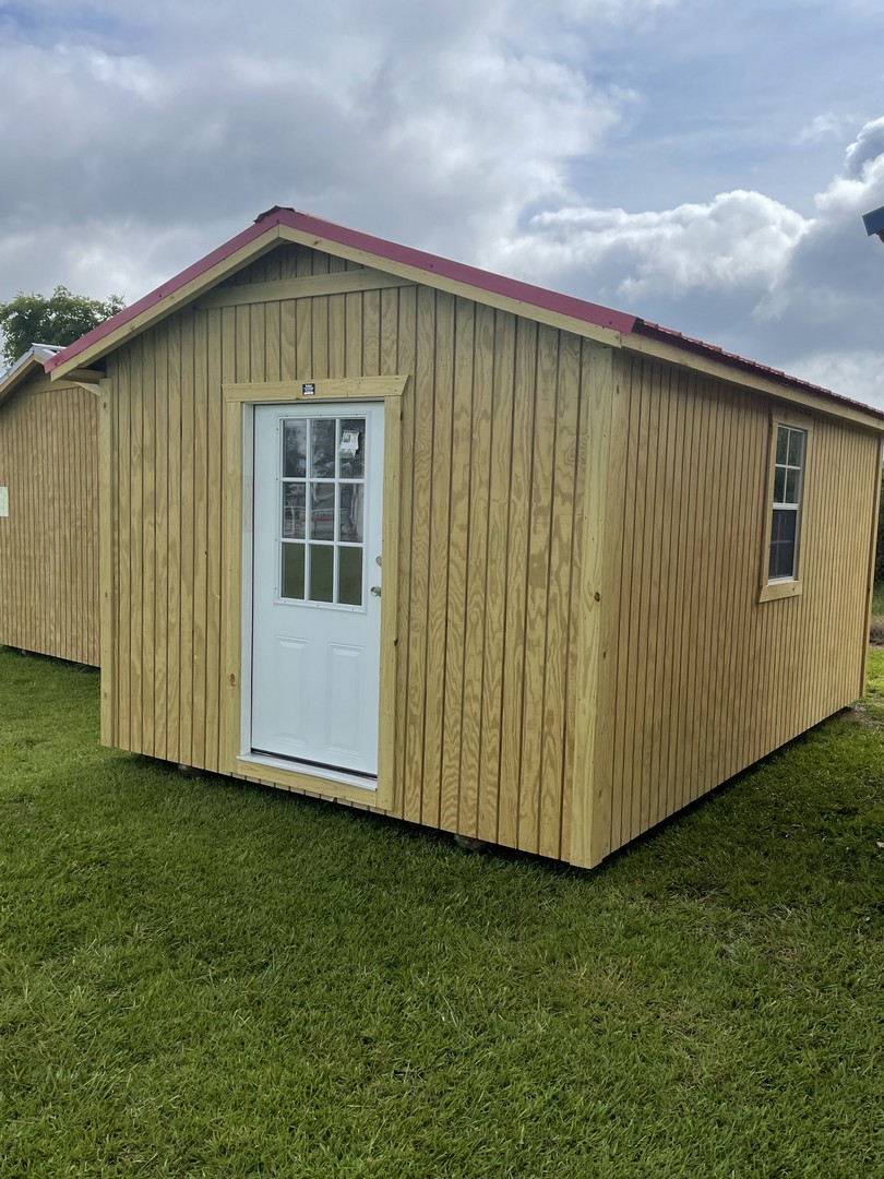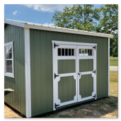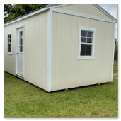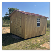 The traditional classic building comes with a 10 year warranty. Available in sizes from 8 ×12 through 16×40. These portable utility buildings make great workshops, pool houses, storage buildings, and more! We can add windows, lofts, porches,ramps or other features to make this building meet your needs! Built locally in Montezuma, GA. Our goal is to offer you a quality product at a reasonable price. Utility buildings are available painted, or natural wood finished. Metal roof or shingle roof.